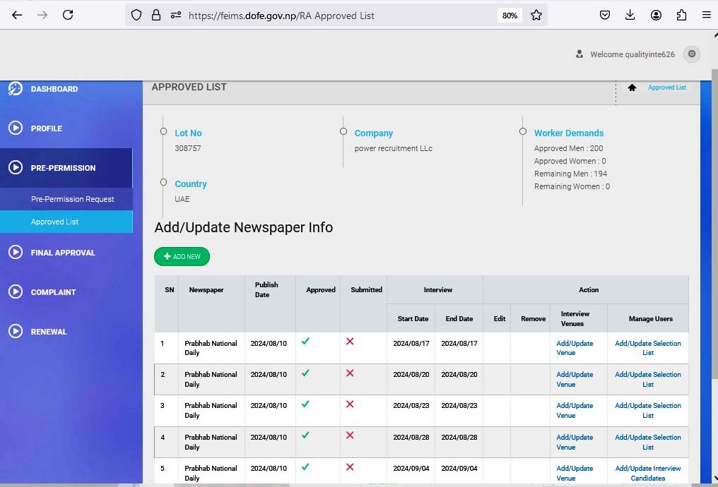 Interview Venue : KATHMANDU, Kathmandu Metropolitan City, OFFICE