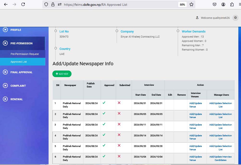 Interview Venue : KATHMANDU, Kathmandu Metropolitan City, OFFICE