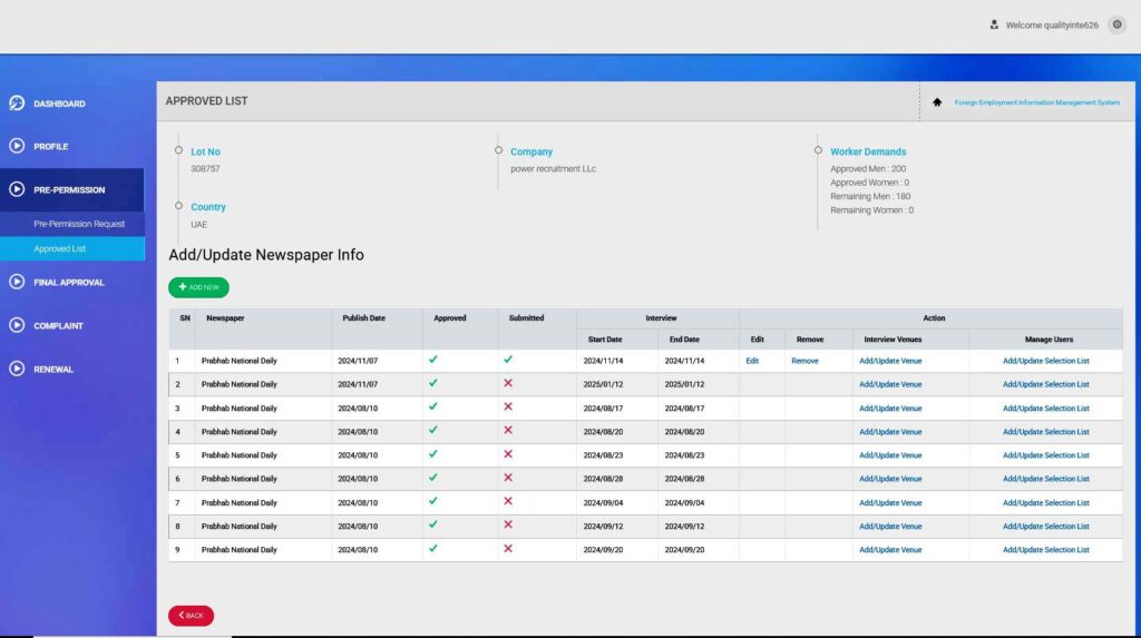 Interview Venue : KATHMANDU, Kathmandu Metropolitan City, OFFICE