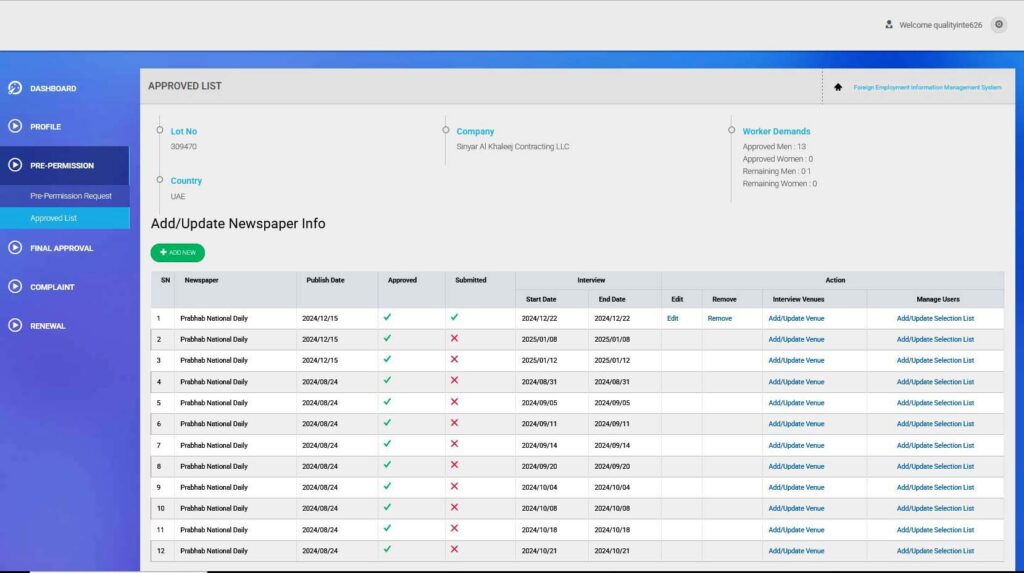 Interview Venue : KATHMANDU, Kathmandu Metropolitan City, OFFICE