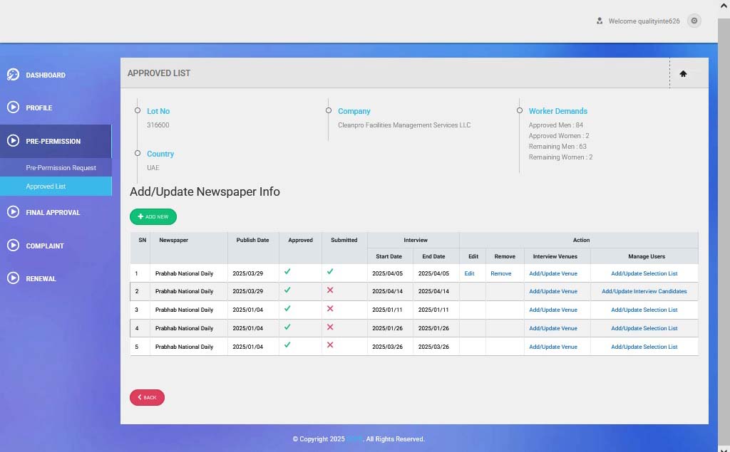 Interview Venue : KATHMANDU, Kathmandu Metropolitan City, OFFICE