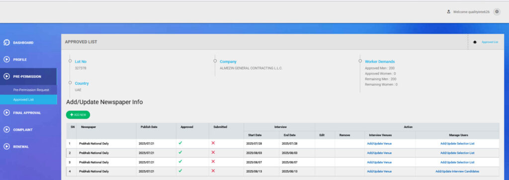 Interview Dates : (from – To) : 13 AUG 2025 – 13 AUG 2025